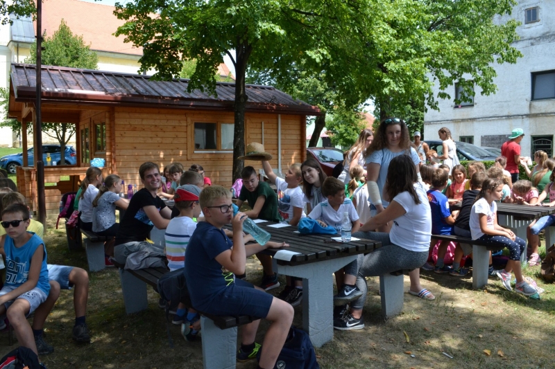 Danes smo se odpravili na lov za skritim zakladom. Po dvigu zastave in zgodbi smo se po skupinah podali na Staro Goro. Ob poti smo opravljali različne naloge. Na Stari Gori smo imeli kateheze, nato je sledila sveta maša. Po sveti maši je sledilo piknik kosilo, na koncu pa smo si še privoščili sladoled.